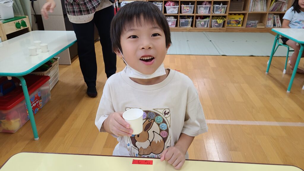 食育の一環として、らいおん組(5歳児)を対象に「出汁」の飲み比べ体験を行いました😁