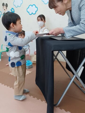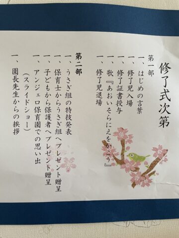 第1部は証書授与です。元気に入場して立派に修了証書を受け取ることができました。