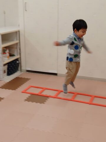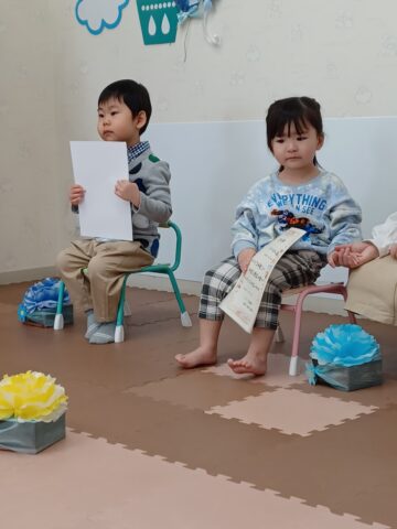 🌸第2部は特技発表を披露しましたよ。ラダーを使ったグーパー跳びとぶら下がりです。とても上手にできたので保護者の方からたくさんの拍手をもらい得意げな表情が印象的でした。