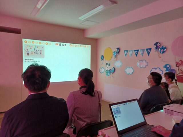 🌸最後はプロジェクターを使用して入園から今までの思い出を振り返りました。可愛らしい写真にみんなでほっこりしました。