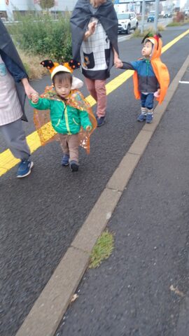 👻プレゼントを渡した後、アンジェロの子ども達も仮装をして「トリックオアトリーと」♬「ハッピーハロウィン」🎶と心で唱えながらエンジェル保育園を尋ねました。
