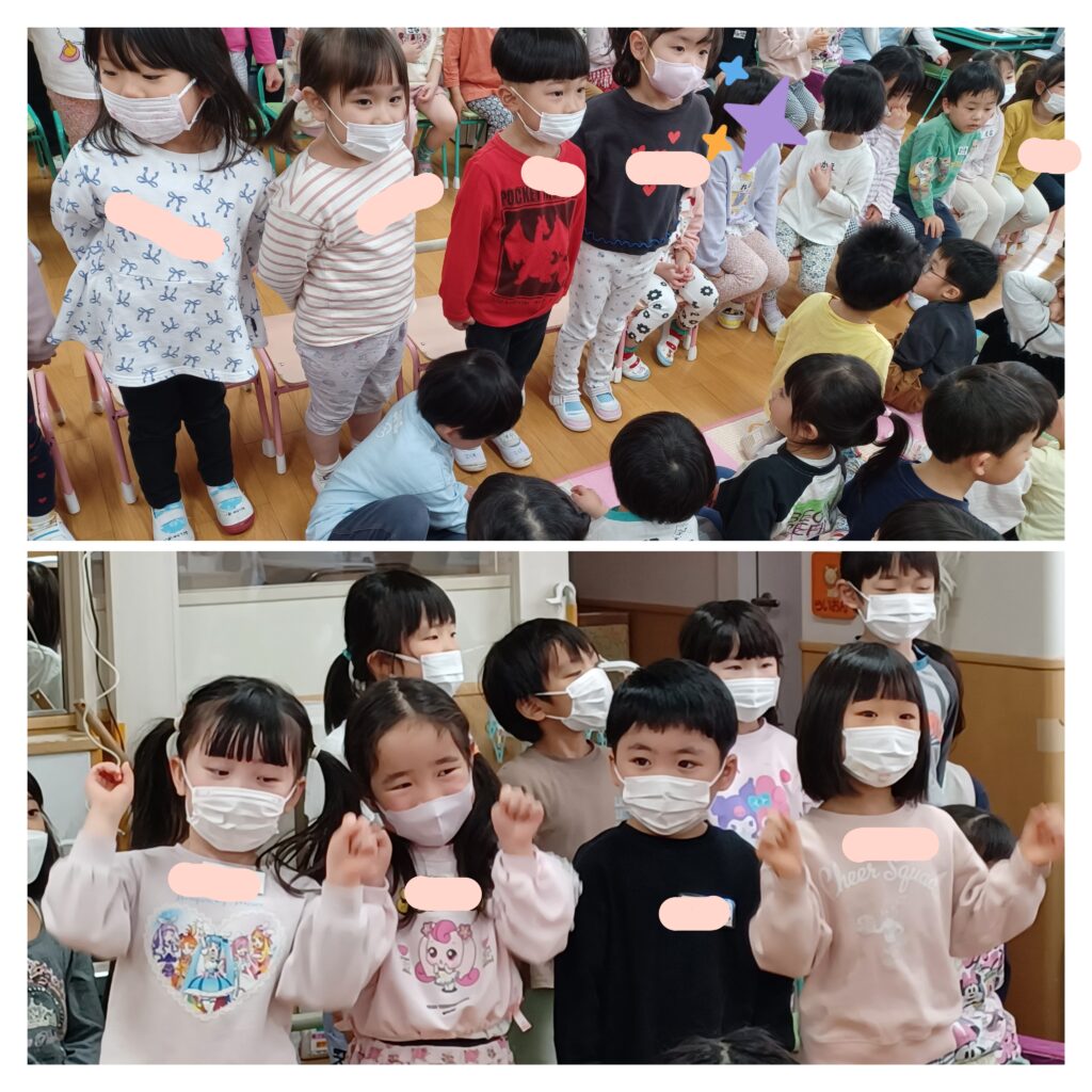 幼児クラスは『ぞうさんのぼうし』を、パート毎に分かれ、振りを付けて発表しました。